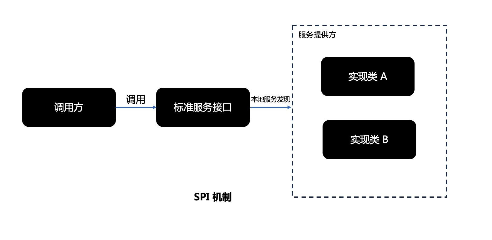 - 服务接口实现:不同的服务提供方可以提供一个或多个实现;框架或者系统本身也可以提供默认的实现