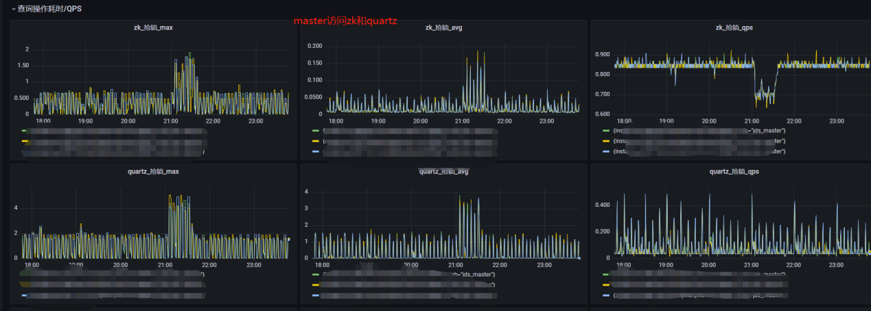 我们通过byte-buddy、micrometer等,实现了自定义轻量级java agent框架。这个框架实现的目标是监控java方法的最大耗时、平均耗时、qps、服务的jvm健康状况等。并把这些监控指标通过http暴露出来,然后通过prometheus抓取,最后通过grafana进行展示,并根据prometheus指标进行告警。以下是master访问zk和quartz的最大耗时,平均耗时,qps等。