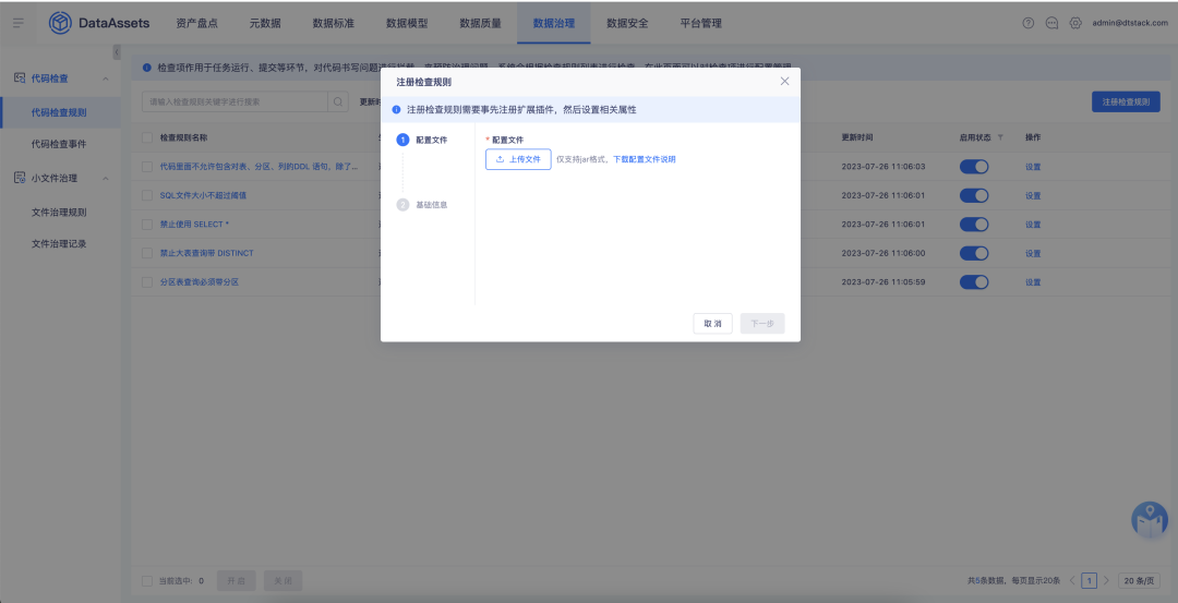 ● 打包当前工程并在数据资产页面注册代码校验规则