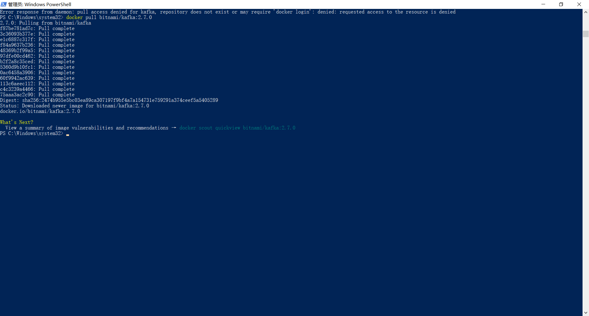 docker pull zookeeper:3.8.2 docker pull bitnami/kafka:2.7.0