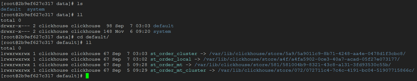 data这个目录是实际数据存储目录,各个表的软连接,全部都是连接到store目录下,实际的数据存储目录是store下,可以用备用节点去查看备用节点的软连接关系,这里可以只创建软连接地址,实际的数据不需要管,启动之后会从副本中去同步数据