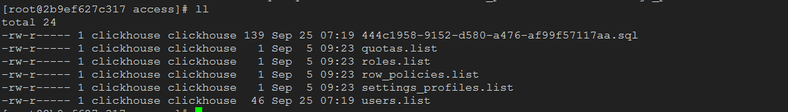 access这个是跟权限相关,数据库的和用户的授权关系,用户的创建语句都在这个下面,如果只是数据盘故障重做的,这个可以去相同分片节点去拷贝过来,这样节点重启的时候,就可以得到原来集群的授权关系和用户信息