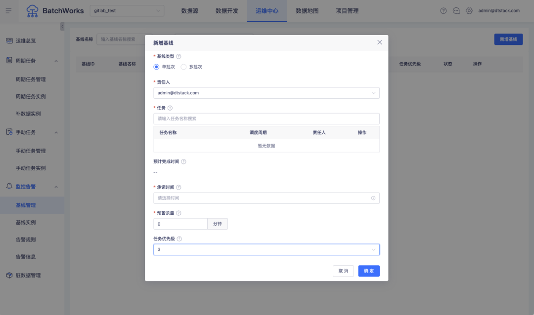 新增功能说明:支持在基线管理中对任务设置1-5个级别的优先级,数值越大,任务运行的优先级越高。优先级越高的任务,在调度资源紧张的情况下,将优先获得调度资源。