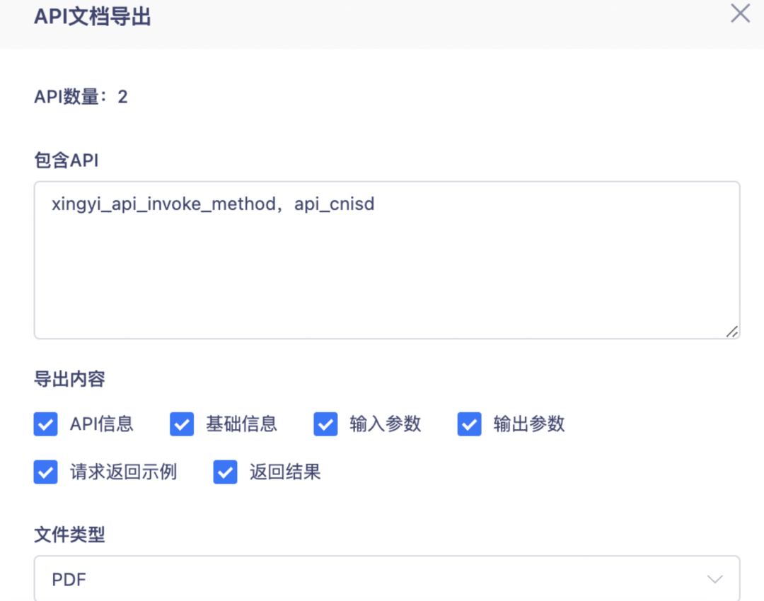 API 文档导出时支持选择导出的内容,且可支持选择目录中的部分 API 进行文档导出。