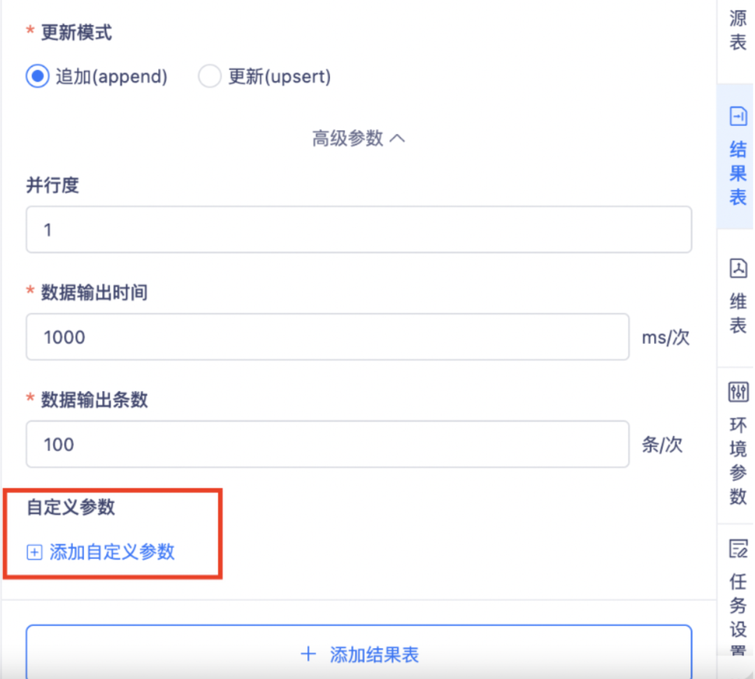 背景:目前结果表中部分数据源的「添加自定义参数」和「更新策略」配置项是缺失的。