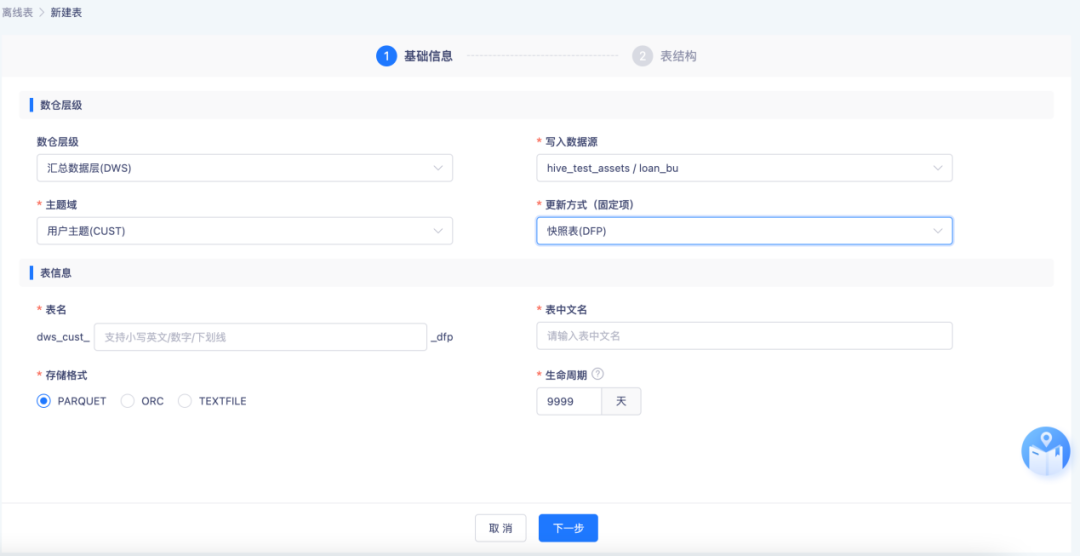 规范数据资产的数据表设计逻辑。通过规范设计,定义数据表的层级结构及主题信息,根据模型元素自动拼接表名,根据数据标准自动带入字段信息,实现数据表的规范化设计。