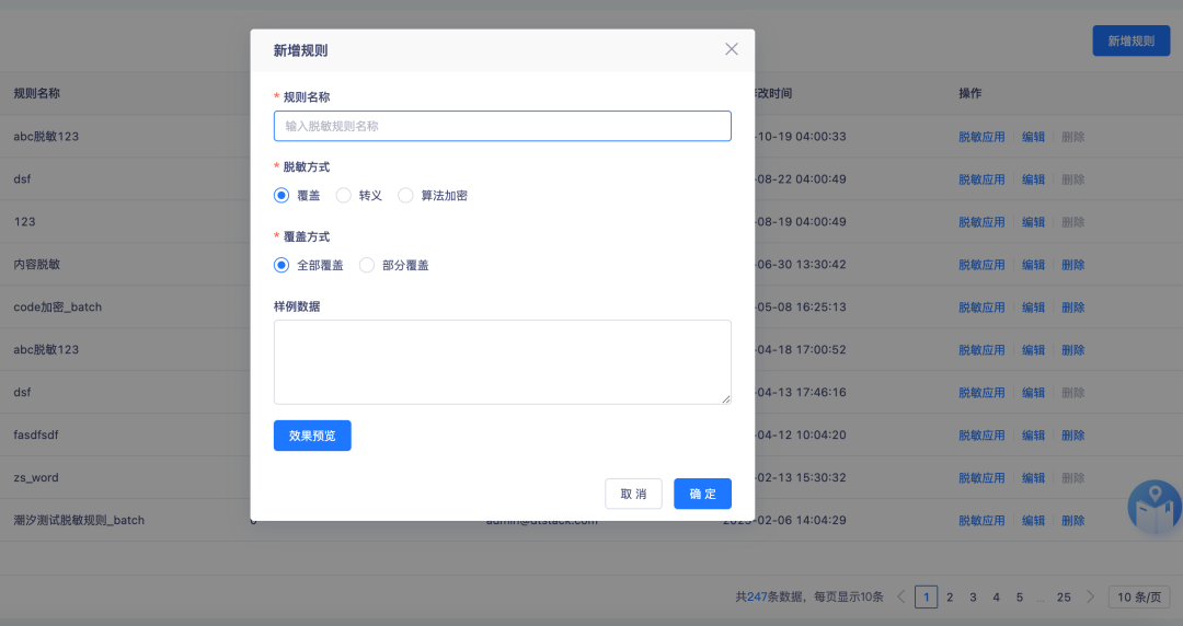 数据规范化的管理离不开数据安全管控,袋鼠云「数据资产管理平台」支持对数据进行脱敏规则管理、数据权限管理及数据分级分类。