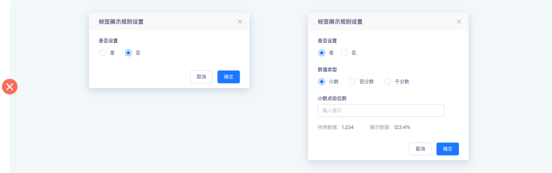 · 信息扩展性更强,可容纳更多提示信息来帮助⽤户更具象的理解以及预防错误发⽣