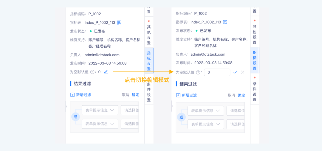 其编辑内容也为展示内容,默认展示状态操作,可切换为编辑状态,属于轻量型的信息采集表单。