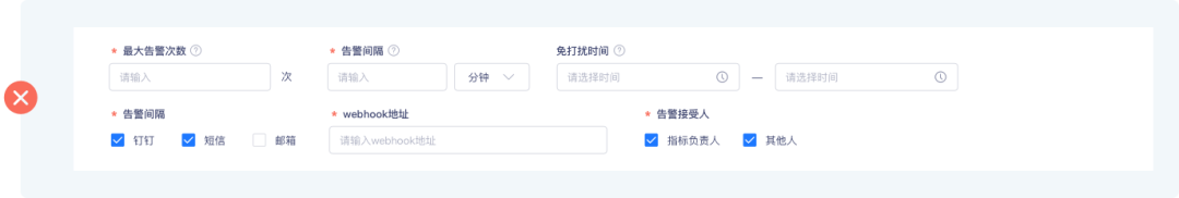 · ⼀个表单所有都是必填项时,为了避免产⽣理解性的错误,我们还是建议标记星号,因为部分⽤户会习惯判断⽆星号的表单不是必填内容
