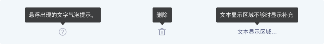 · 展示帮助性信息:解释说明、帮助信息这类提示更偏向于业务属性,随着⽤户深⼊使⽤产品,这些信息会变得不再重要,⽤户查看的频率也会越来越低。所以我们通常会将这类信息收起,当⽤户不理解某个功能,或想要获得更多信息时,通过访问“?”问号 icon 查看相关联的更多帮助性信息。