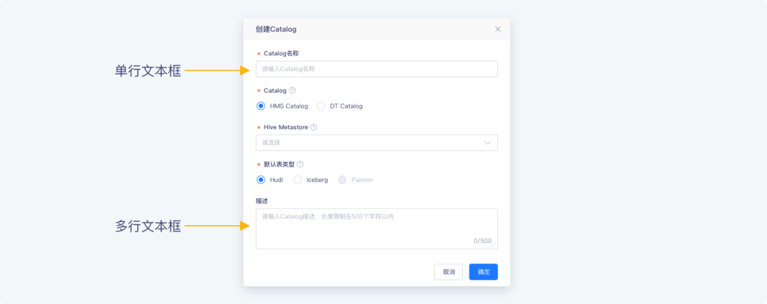 表单是B端产品中最常见的组件之一,主要⽤于数据收集、校验和提交。比如登陆流程的账号密码填写,注册流程的邮箱、用户名等信息填写,都是表单应用的常见案例,在数栈产品中也是出现频率⾮常⾼的组件。