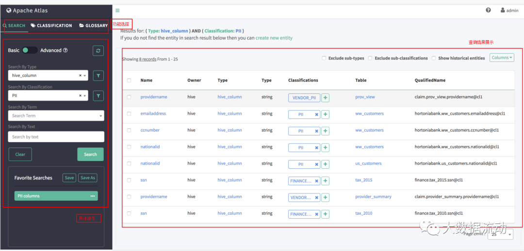 Altas有搜索,数据血缘,标签,术语表等功能。