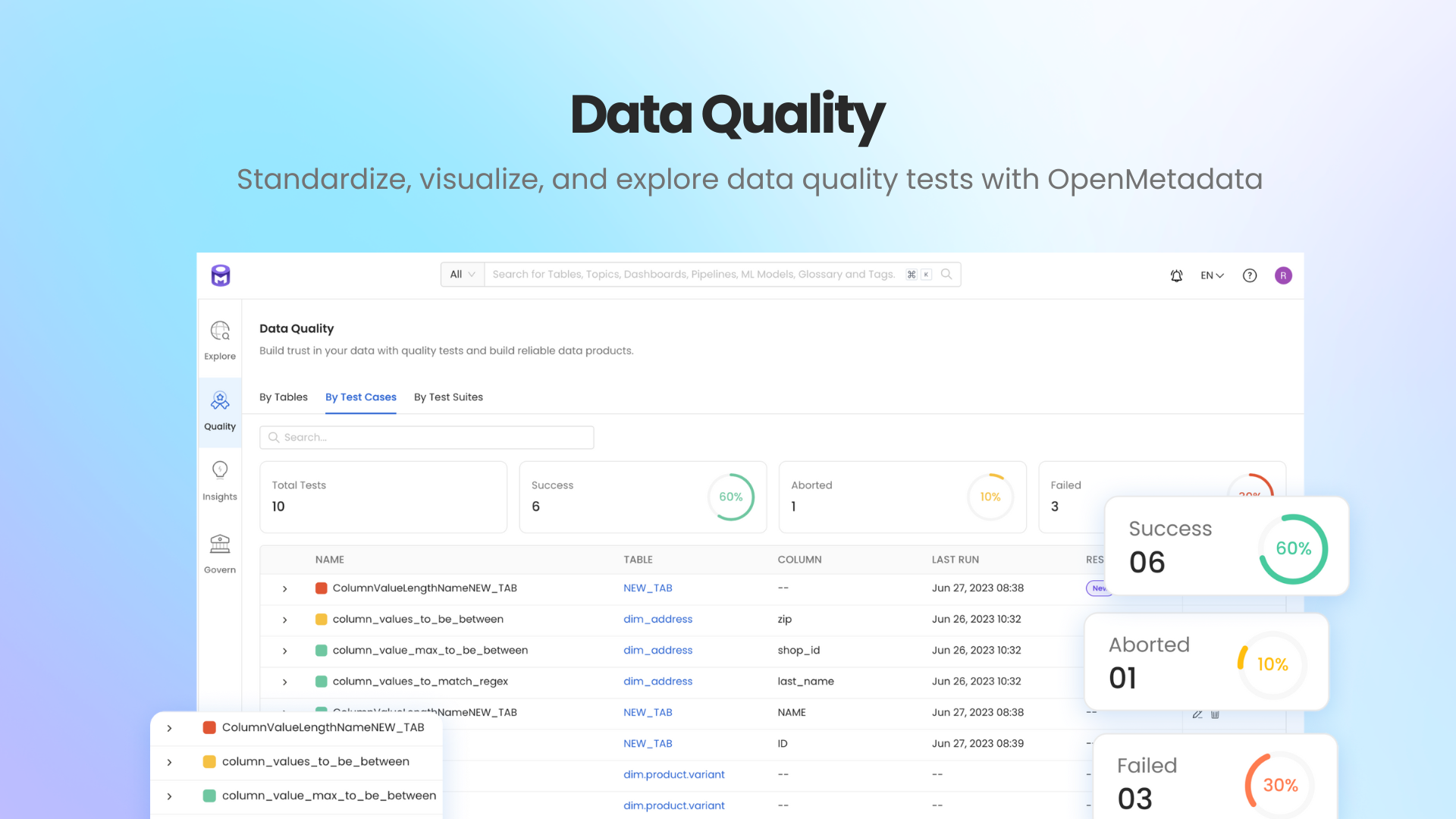 Datahub有搜索,数据血缘,数据分析,标签,术语表等功能,也可以集成数据质量框架,如GreatExceptions。