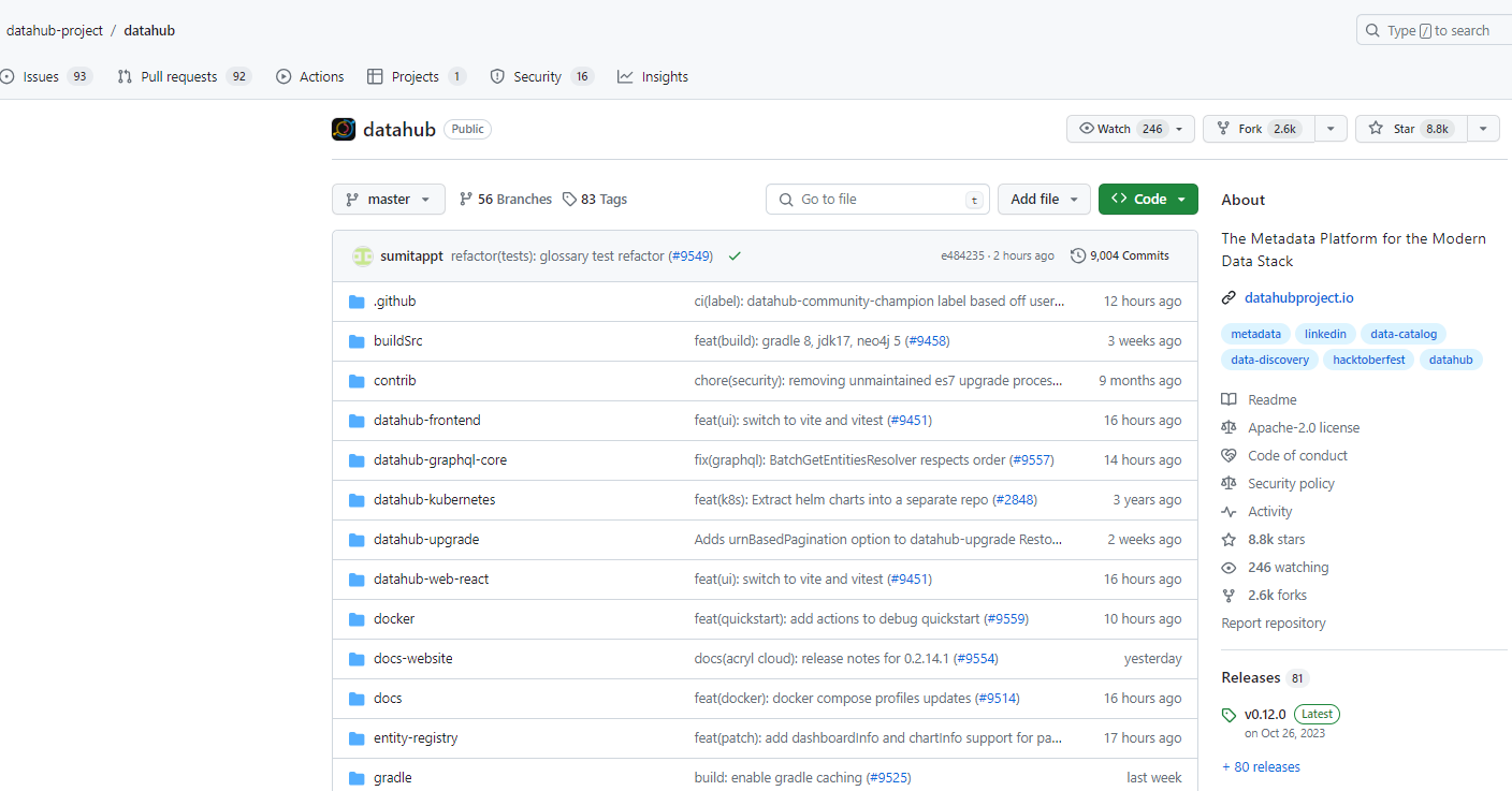 LinkedIn开源出来的,原来叫做WhereHows 。经过一段时间的发展datahub于2020年2月在Github开源。