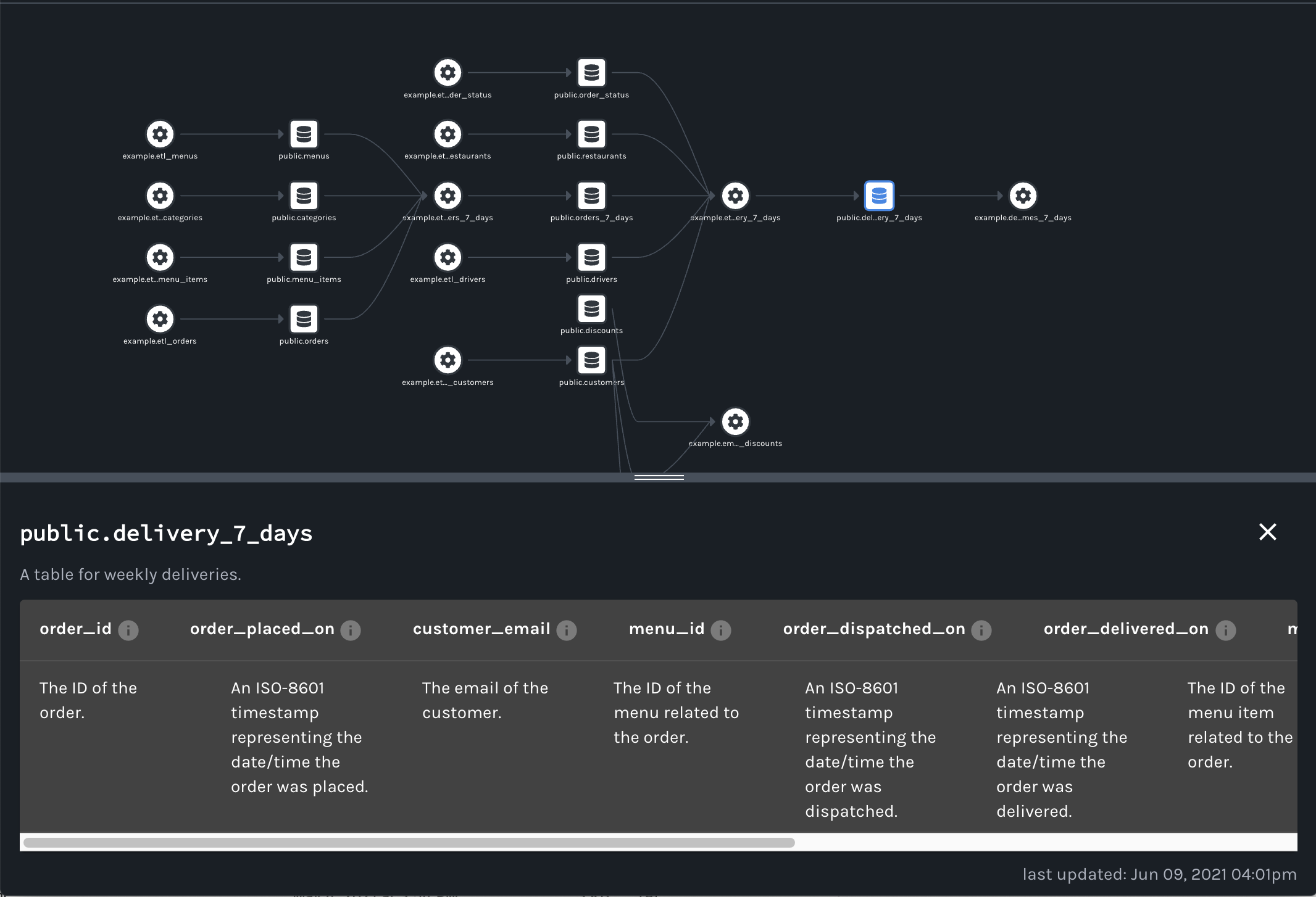 。要查看 的沿袭元数据etl_delivery_7_days