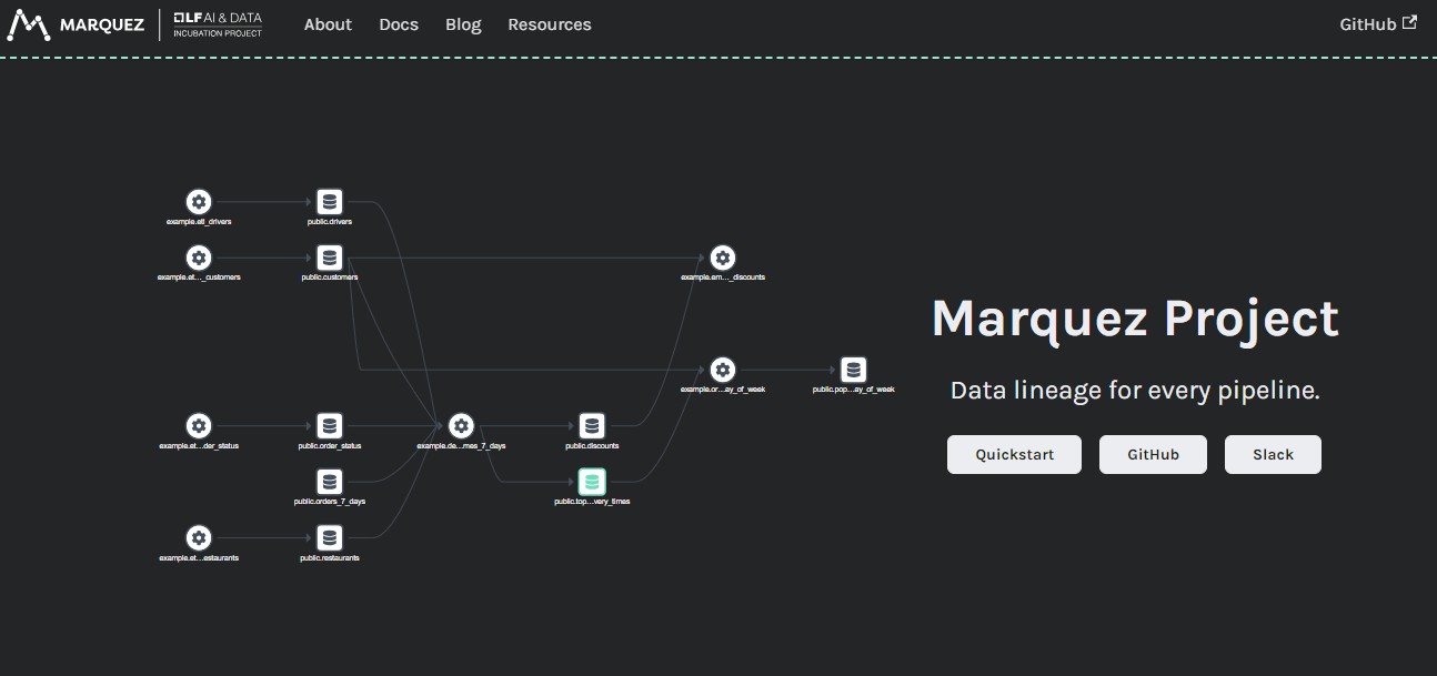 Marquez提供了开源的元数据服务,用于数据生态系统元数据的收集、聚合和可视化。通过它可以对数据集整体的产生和消费情况进行把控。