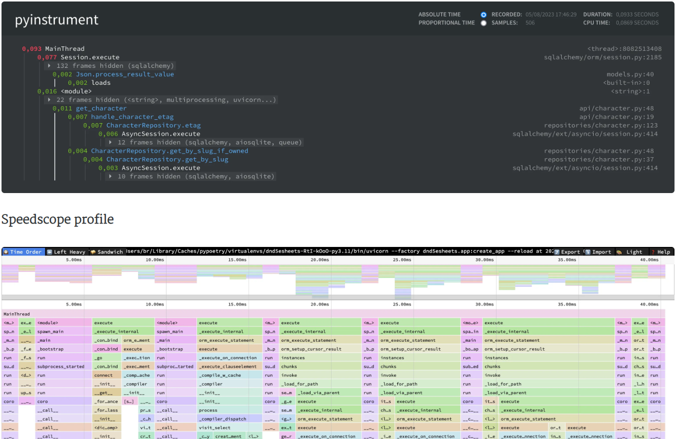 一个轻量级、无侵入的 Python 代码性能分析库,支持分析异步任务和事件循环代码,可生成多种格式的分析报告,包括文本、HTML 和火焰图。(star 5.5K)