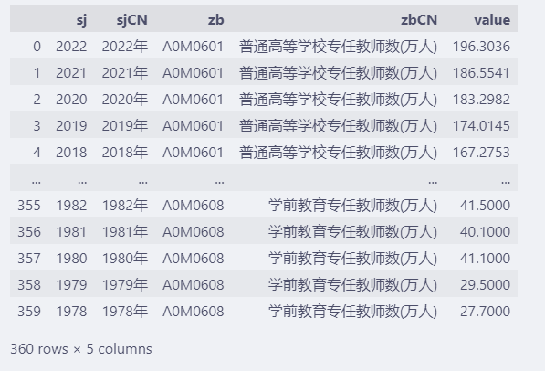 这次选用了国家统计局公开的教育类数据:https://databook.top/nation/A0M