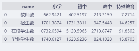 columns=["name", "小学", "初中", "高中", "特殊教育"],