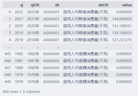 #> A0A0A03 居民人均蔬菜及食用菌消费量(千克)