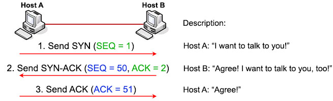 接着我们来具体看一下在TCP/IP协议中,TCP是如何采用三次握手四次挥手实现数据包的通信功能的,如下是一个简单的通信流程图;
