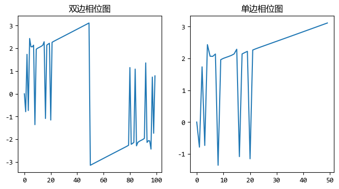 从这两个图中就能得变换后各个频率的信号的频率,振幅,相位信息。
