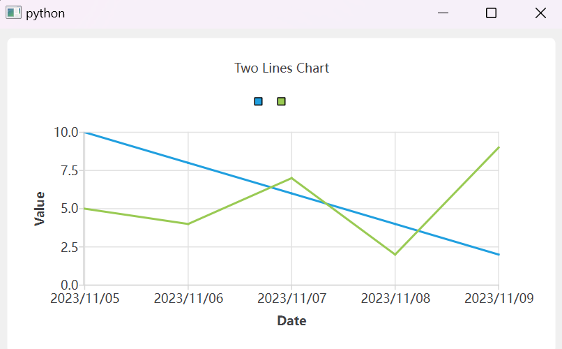 为了在图表上显示数据,我们需要QChart实例。我们向其中添加series,隐藏图例(legend),创建默认轴,并设置图表的标题。