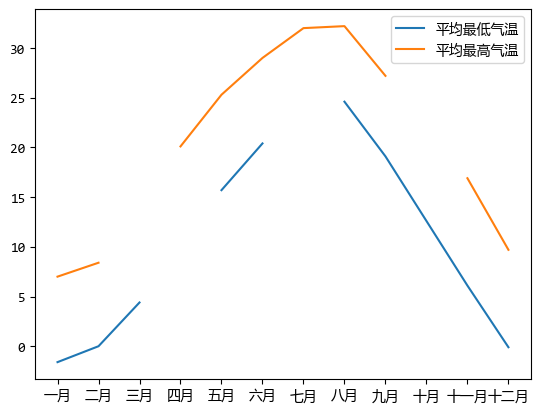 "平均最低气温": [-1.6, 0.0, 4.4,