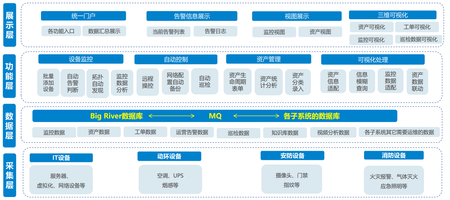大屏与本系统监控数据如数据库性能、告警数据的无缝对接,图表直观展示,提高运维形象。