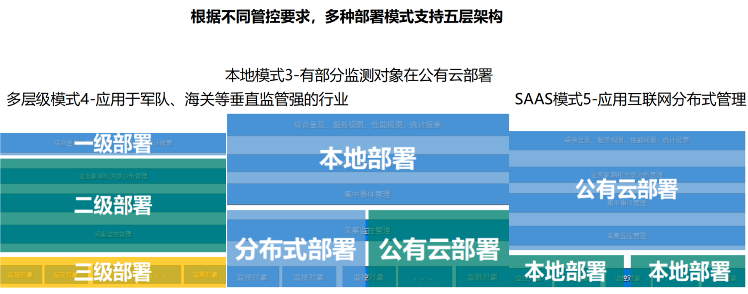 一体化智能运维管理平台对医院HIS、LIS、PACS等业务核心,每个业务系统涉及客户层、网络层、服务层、存储层、安全设备等;通过一体化运维系统多个层级,能够从业务的角度对IT进行管理,通过业务建模的方式,方便的定义业务系统与IT组件的依赖关系,在业务系统出现问题时,及时发现问题的根源。