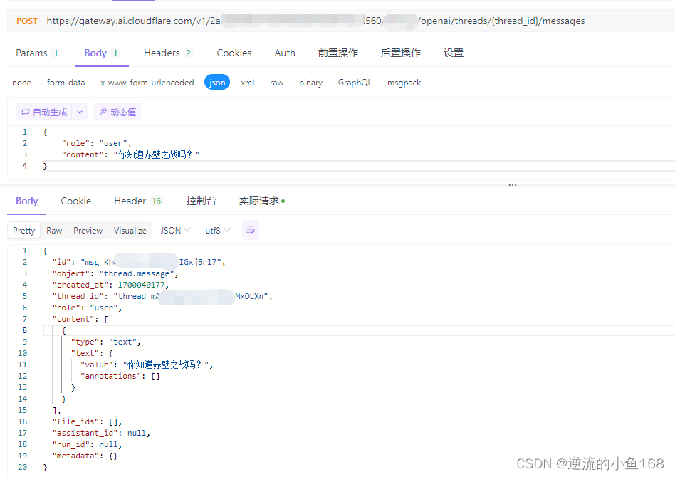 - 3.创建线程(Thread),您可以将线程理解为用户与助手对话的上下文,它会记录用户与助手相互发送的message。