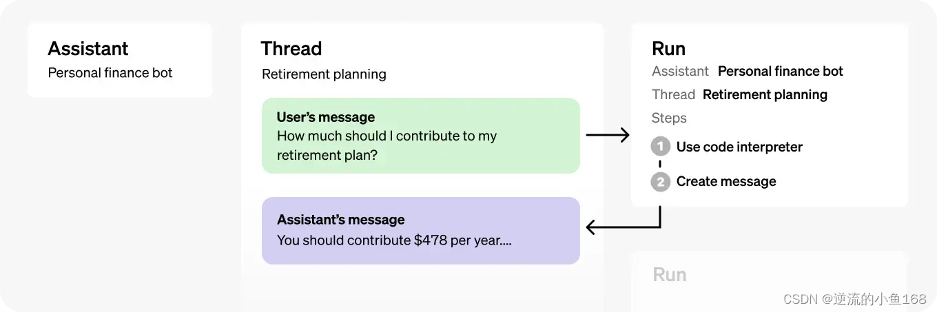 - 5.执行人机交互(Run),消息发送完毕,是时候让助手干活了。关于Run的执行,里面细节比较多,后面有机会聊。