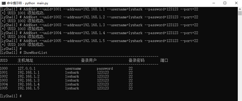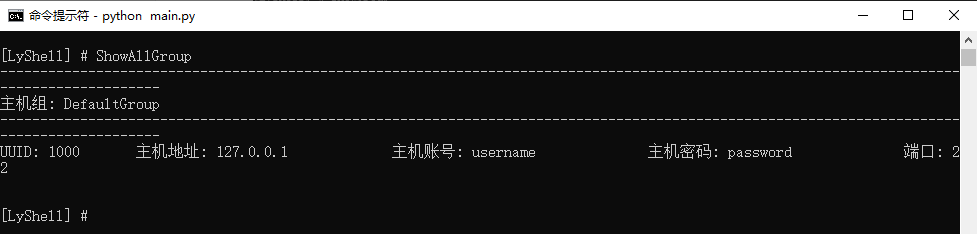 "HostList": [["1000", "127.0.0.1", "username", "password", "22"]],