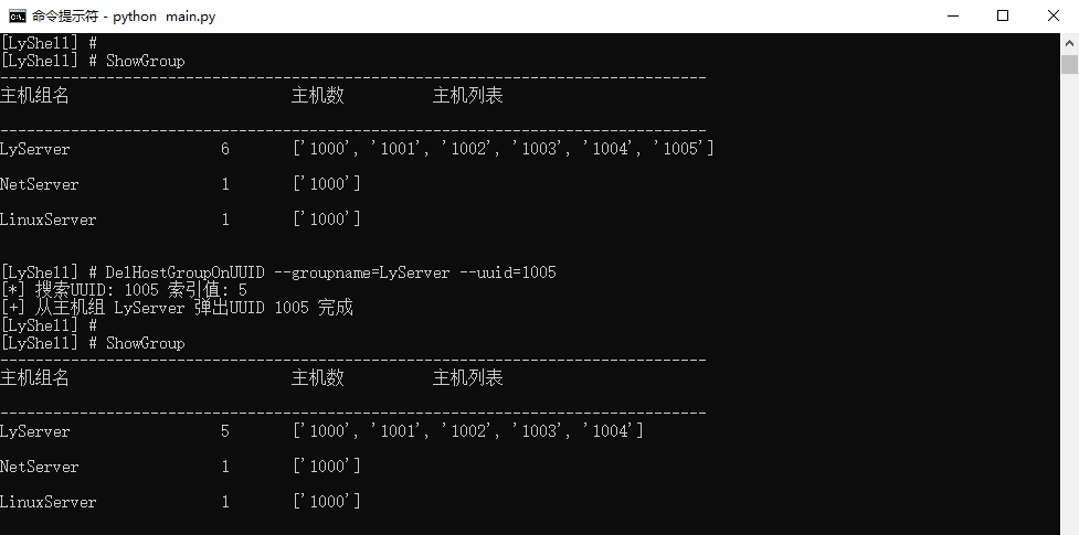 elif(cmd[0] == "DelHostGroupOnUUID"):