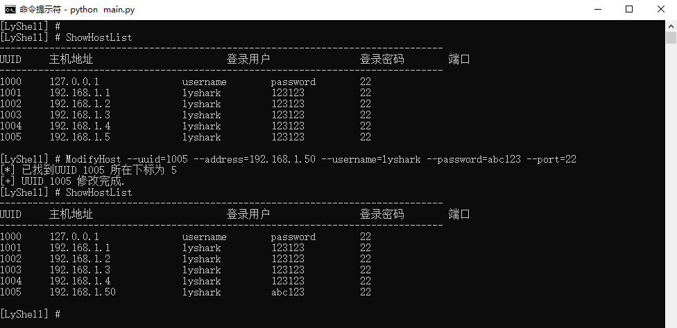 host_list[index] = [uuid,modify_address,modify_username,modify_password,modify_port]