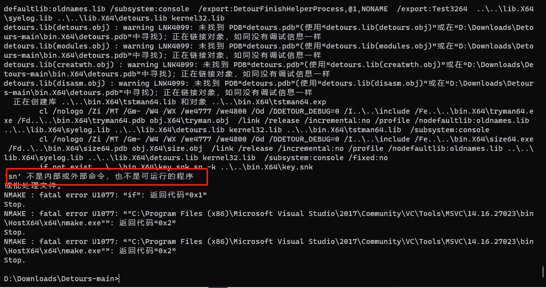 编译的时候有一个错误: 'sn' 不是内部或外部命令,也不是可运行的程序