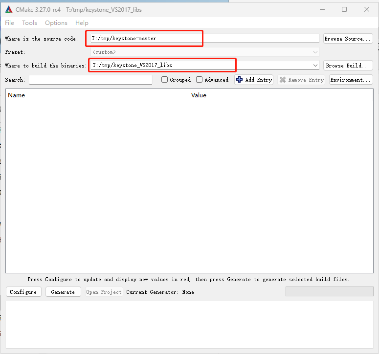 大部分步骤跟上面一样,唯一不同的是这里需要增加一个宏BEA_ENGINE_STATIC,点击+ Add Entry, Name填BEA_ENGINE_STATIC,type就默认BOOL,value勾选它,在点击OK。