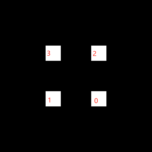 根据之前的检测顺序,我已经标出了从0~3这四个轮廓的编号,下面我们先自己写出每个轮廓的hierarchy: