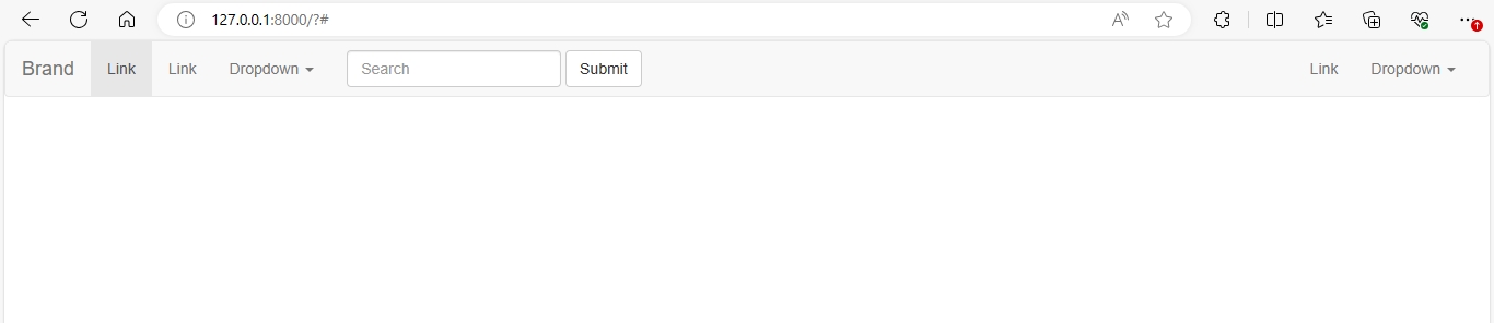 运行项目,在浏览器打开127.0.0.1:8000,带默认导航栏的网站样式如下: