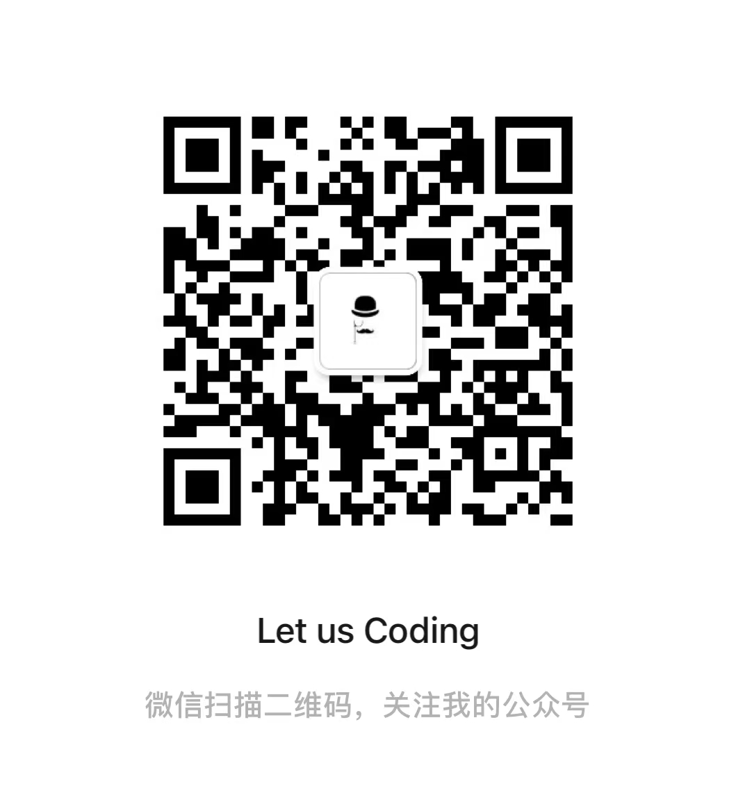 为了方便其他设备和平台的小伙伴观看往期文章:公众号搜索Let us Coding,或者扫描下方二维码,关注公众号,即可获取最新文章。