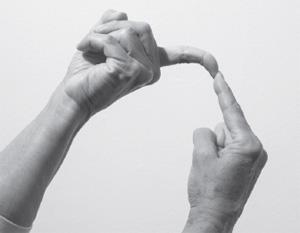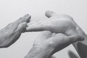 僵硬的手不能完全张开。即使施加轻微的压力,手指仍会向内弯曲。各个年龄段的人都可能出现僵硬手。有时,生活在过去、固步自封的老人的手也会出现这种情况。