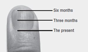 我们可以根据甲沟的位置来估算甲沟出现的时间;指甲从基部到顶端大约需要6个月的时间才能完成生长周期)。例如,如果甲脊出现在靠近指甲根部的位置,说明事件发生的时间很短,很可能是在上个月。如果在指甲中部发现脊纹,则冲击发生在大约三个月前。如果靠近顶部,则事件发生在大约五到六个月之前。(虽然六个月是一般规则,但生长时间可能因人而异)。
