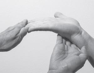 感受手的弹性或缺乏弹性。当你从两侧按压手掌时,你可以很容易地分辨出手掌是否有弹性,是否会在压力下塌陷,还是非常坚硬,几乎没有或完全没有弹性。估计手掌的回弹力和弹性。如果挤压手掌时有回弹力,说明手掌的韧性很好。