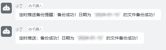 接下来就是使用python来完成备份成功与否的判定,并且发送至钉钉。效果图如下: