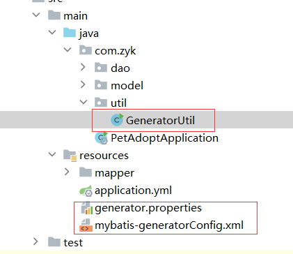 执行GeneratorUtil.java中的main方法即可使用mybatis逆向工程生成文件。