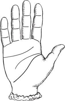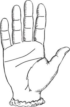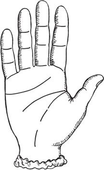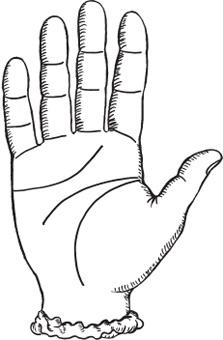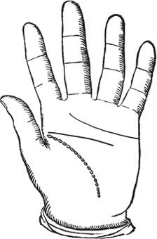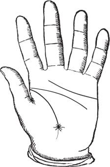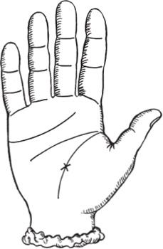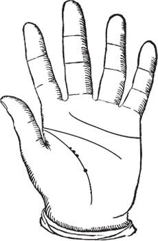 生命线上的圆点有各种大小,圆点越大、越深,表示的情况越严重。点代表急性疾病或意外事故。它们是非常具体的事件,其发生的时间可以通过生命线来确定。通常在圆点之后还会出现其他迹象,表明疾病的影响。重要的是要注意点之后的线的特征。如果生命线变细、呈岛状或链状,则表明此人需要很长时间的恢复才能重新变得强壮。如果生命线上的一个点与土星山上的一个 X 用偶然的线连接起来,那么这个点肯定表示发生了意外,因为土星原型最容易发生意外。如果圆点被染成深粉色或红色,就会增加预示的严重性。