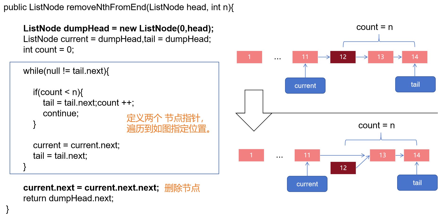 给你一个链表,删除链表的倒数第 n 个结点,并且返回链表的头结点。