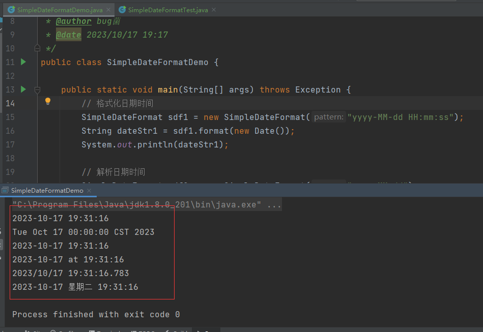 针对如上的测试用例代码,给大家演示了如何使用Java中的SimpleDateFormat类对日期进行格式化和解析,具体介绍如下: