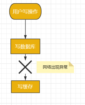 某一个用户的每一次写操作,如果刚写完缓存,突然网络出现了异常,导致写数据库失败了。